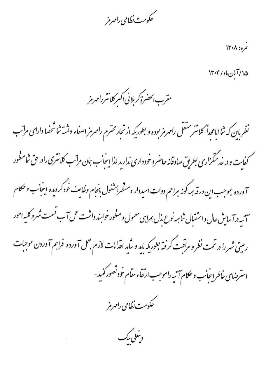 بخش نهم : کربلایی اکبر کلانتر ، حاکم رامهرمز